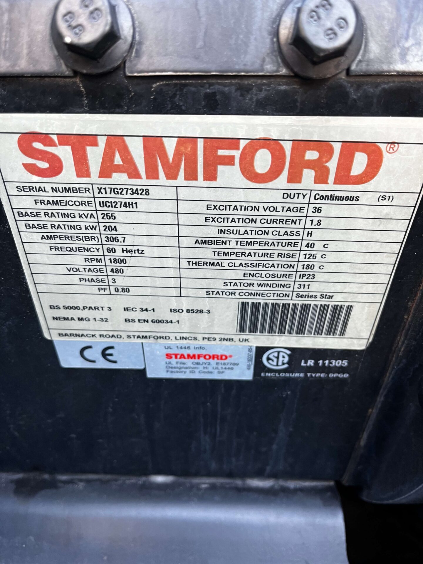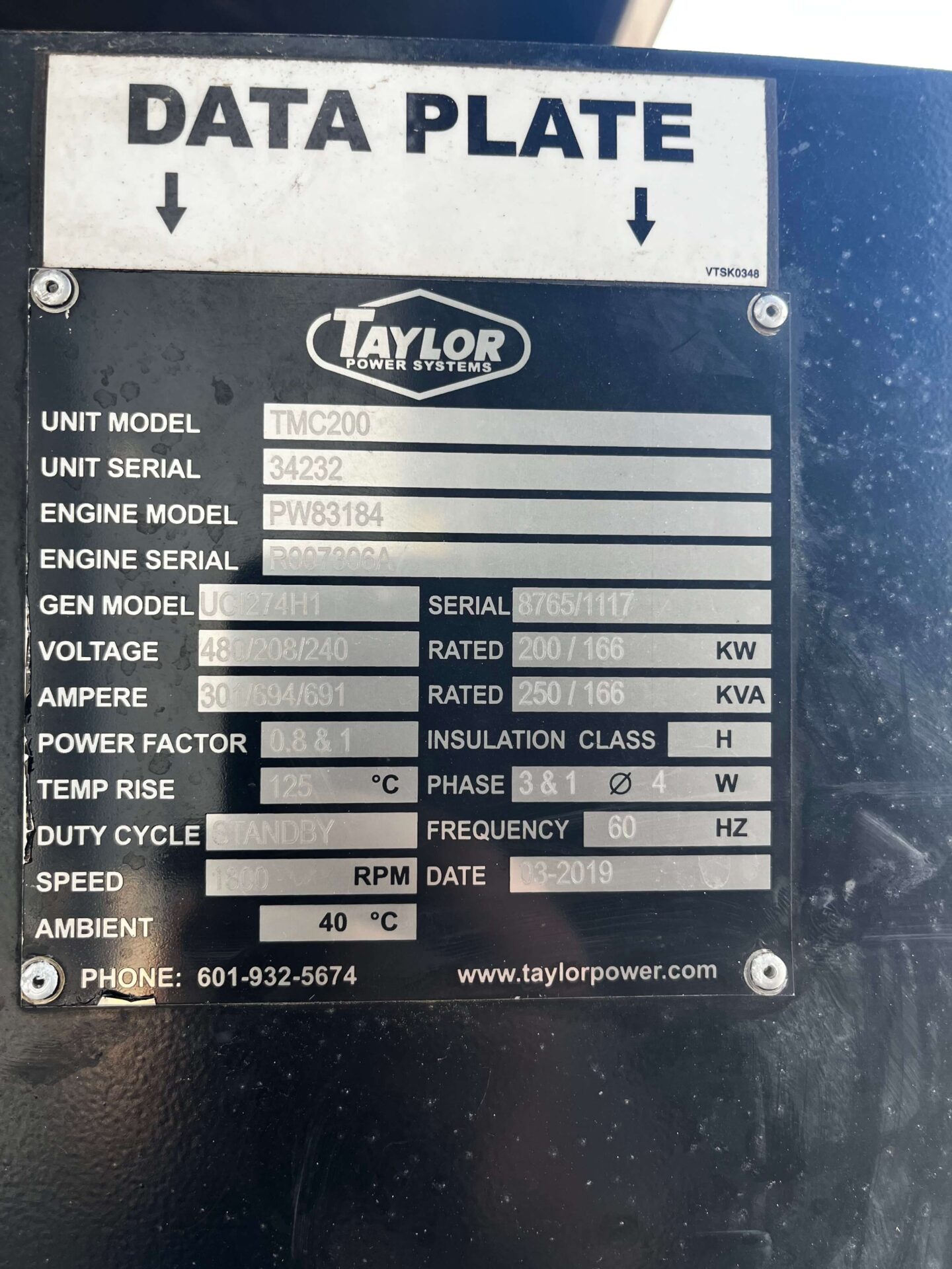 200 kW Standby / 180 kW Prime