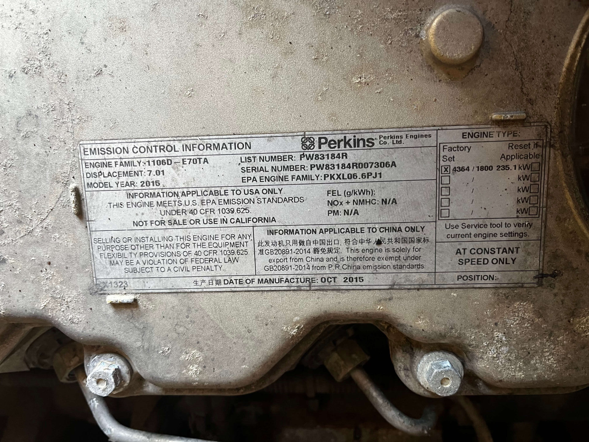 EPA Tier 3 Perkins PW83184R Diesel Engine
